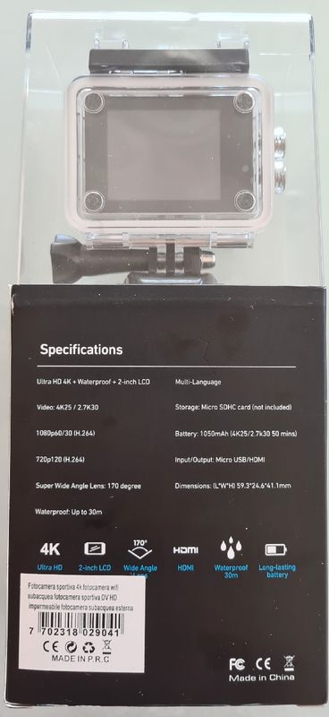 Fotocamera SPORTS 4K Ultra HD 12 MP impermeabile 30 m