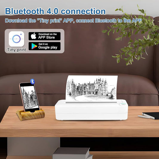 Stampante portatile,Stampante portatile per carta A4 Stampa termica Wireless BT Connect Compatibile con iOS e Android Supporto per stampante fotografica mobile